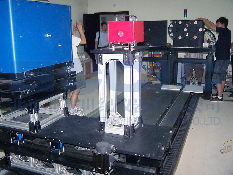 此套X光檢測系統為我公司為國內某計量院設計制造。系統主要分為兩部分,X光發射裝置和X光接收裝置,兩裝置中間導軌長度為6米。